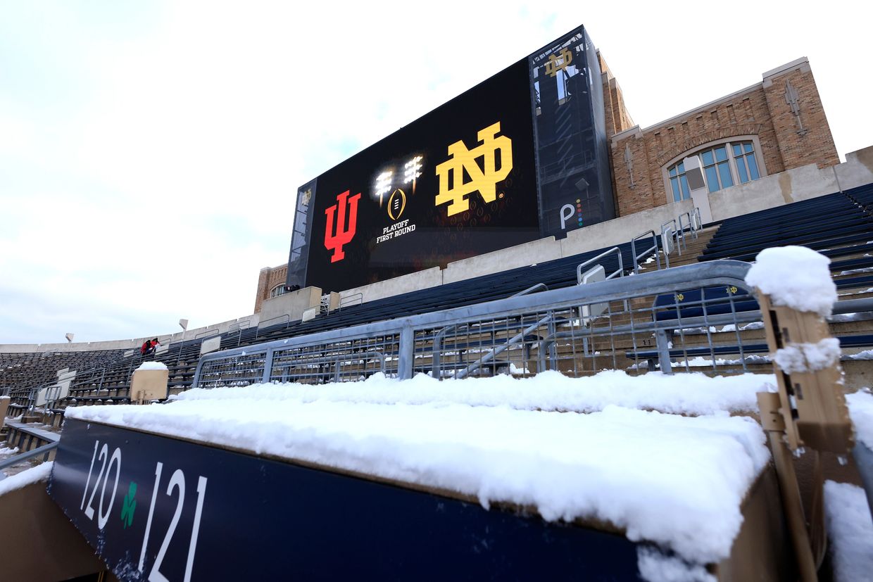 Playing against each other for the first time since 1991, Friday night’s game kicked off after the South Bend area received around two inches of snow earlier in the day, setting up for a chilly affair.