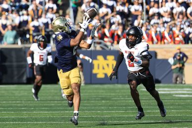 Notre Dame’s kicker Mitch Jeter made a 49-yard field goal in the final seconds of the half to give the Irish a 17-3 lead entering the break.